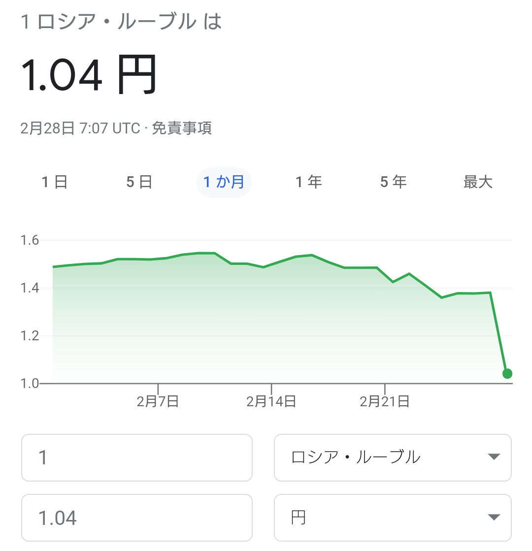 1時間前1.38円だったのに今1.04円