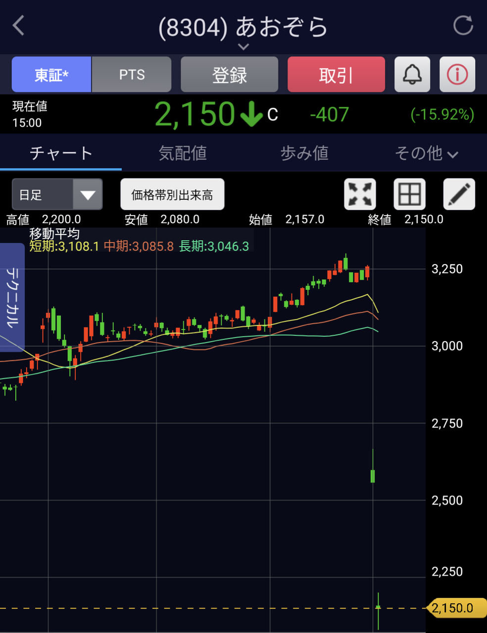 まさか堅実なチャート描いてた銀行株がこうなるとはな