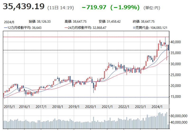 いうて日経225のピークが42000円ぐらい