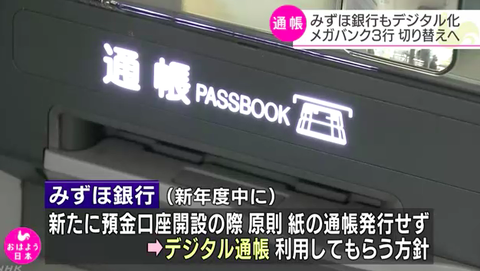 みずほ銀行、預金通帳をデジタル化へ